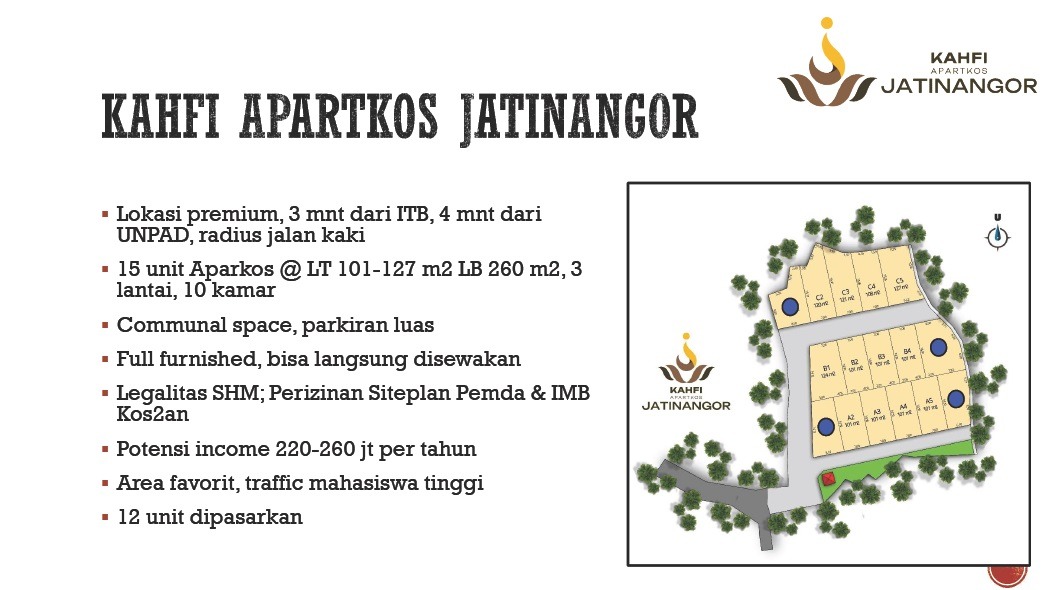 Kahfi Apartkos Jatinangor Bandung hadir sebagai solusi Investasi Kos-kosan eksklusif untuk mahasiswa dan profesional muda di kawasan Jatinangor, Bandung. Menggabungkan kenyamanan tempat tinggal dengan suasana tenang dan fasilitas lengkap, kami berkomitmen untuk memberikan pengalaman tinggal yang ideal di tengah pusat pendidikan ternama seperti UNPAD, ITB Jatinangor, dan IPDN.